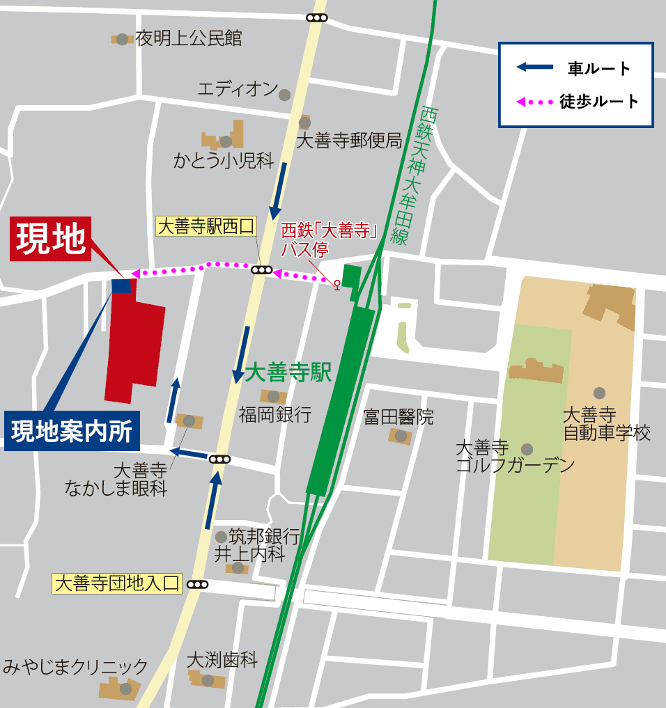 | 西鉄バス「大善寺」バス停 | 徒歩4分 |