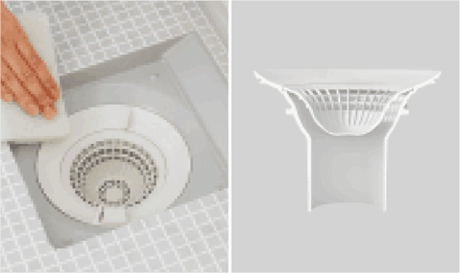 洗いやすく、汚れにくい。お手入れを簡単にする、このカタチ。滑らかなすり鉢形状が髪の毛やゴミを中央に誘導、水の流れで、髪の毛を浮かせてまとめます。